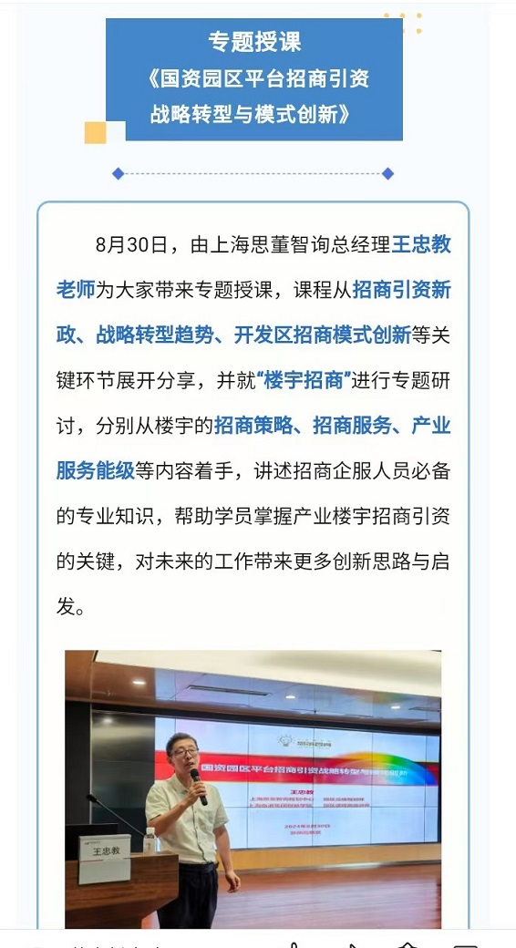 宝山南北转型产业链招商、小微企业园区运营提升等课题,进行研讨培训合作。