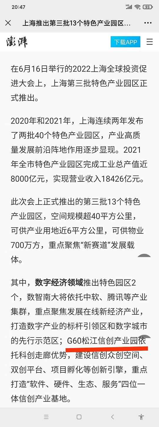 祝贺我方承担战略与产业规划编制的“G60松江信创产业园”核心先导区规划,今天获批上海市第三批13家特色产业园之一。500亿的目标规划,正好比2021年全市已有的40个特色产业园平均产出(18426亿/40)略高。